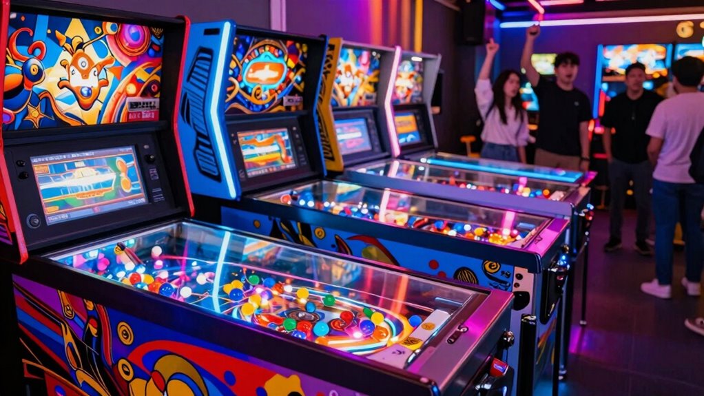 Maintaining a pinball machine properly guarantees it continues to perform well and keeps players coming back. Regular cleaning of the playfield, flippers, and sensors is essential to prevent dust buildup and promote smooth gameplay. Mechanical parts like bumpers and flippers need periodic lubrication and inspection for wear and tear to avoid malfunctions. Electronic components such as circuit boards and wiring should be checked regularly for damage or corrosion, which can disrupt operation. Software updates or calibration might be necessary to keep scoring accurate and gameplay ideal. Additionally, keeping a stock of replacement parts like bulbs, fuses, and switches allows for quick repairs, minimizing downtime. Consistent maintenance not only prolongs the machine’s lifespan but also guarantees a seamless experience for players.